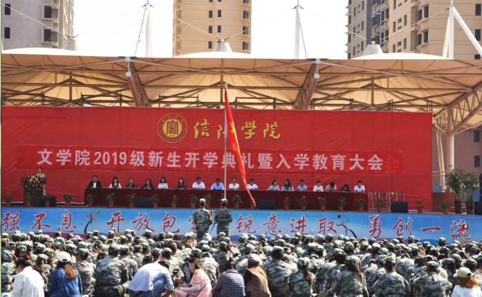 为了让全体新生进一步了解学校及学院的基本情况,尽快适应新的学习生活环境。文学院于2019年9月23日上午10:30在田径场举行了“文学院2019级新生开学典礼暨入学教育大会”。参加此次会议的人员有文学院院长毛正天教授,党总支书记张甲楠、教学秘书陈浩,行政秘书陈俊,学工干事徐远东,全体辅导员以及全体2019级新生。大会由文学院党总支书记张甲楠主持。