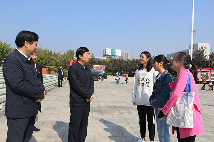期间,拥有汉语言文学专业学习经历的乔新江书记还与学生就专业问题进行了交谈,并与三名学生一一握手。