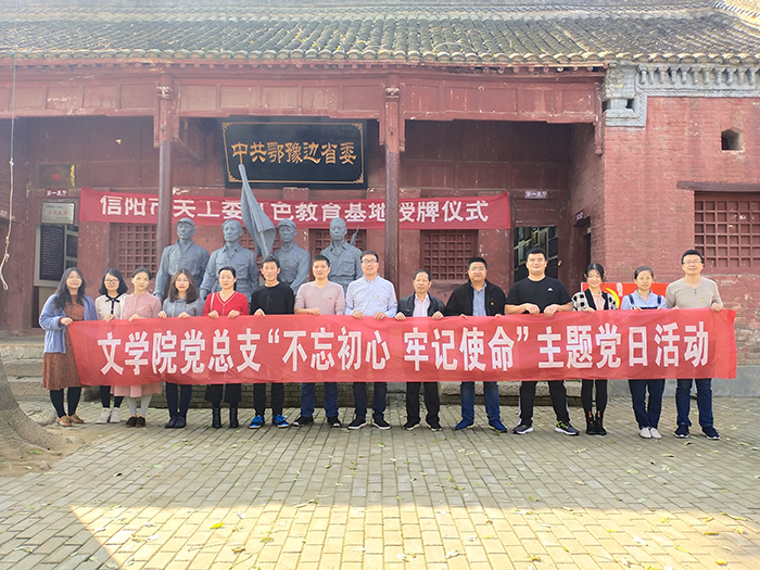 为深入开展“不忘初心、牢记使命”主题教育,充分依托信阳红色优势资源,传承和发展好红色精神,10月18日,信阳学院文学院党总支分别前往鄂豫皖革命纪念馆、鄂豫边省委旧址开展“追寻红色印记 传承红色基因”主题党日活动。