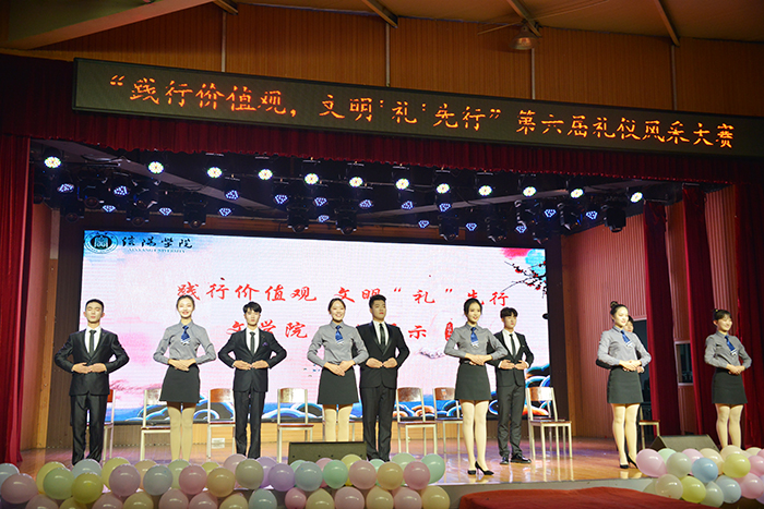 为弘扬中华民族优秀的传统礼仪道德文化,展现我校学生的青春风采,丰富校园文化生活。我校于11月27日晚7点在大学生活动中心举办“践行价值观,文明‘礼’先行”第六届礼仪风采大赛,本次比赛由秦浩和彭澳主持。有关单位负责同志周曙光、郑山峰、白杨、秦金峰、王红担任本次比赛评委。各学院团总支书记和500余名学生代表一起观看了比赛。