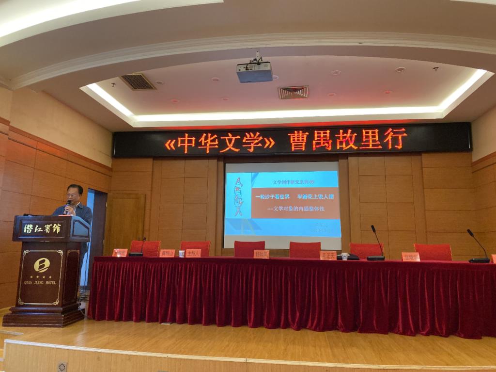 10月10日,中国写作学会副会长、文学院院长毛正天教授应邀赴湖北潜江为“中华文曹禺故里行”做文学创作专题学术讲座,在潜江宾馆会议厅做了《一粒沙子看世界,半瓣花上说人情----文学对象的整体性内涵》学术讲座。来自湖北省内外的今古传奇、中华文学签约作家、潜江作家协会专业作家及毛正天教授指导的在读研究生近百人听取了讲座。