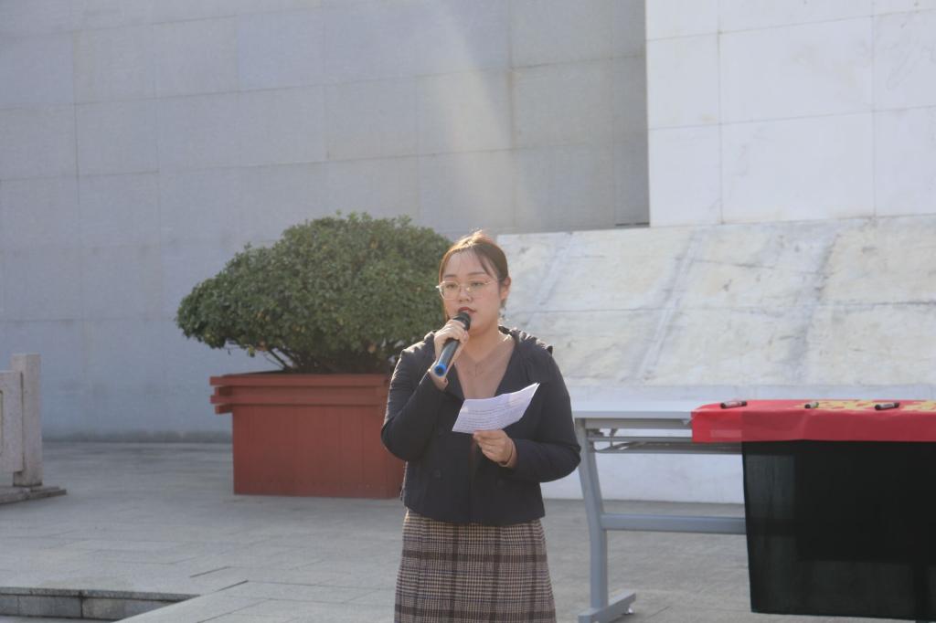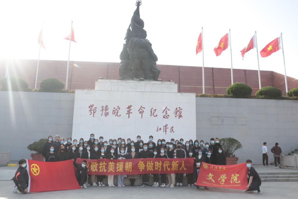 文学院团总支书记胡若扬老师总结发言。她指出,今天我们怀着敬畏之心来到鄂豫皖革命纪念馆,缅怀革命先烈,传承红色基因。大家要以一个合格的共青团员标准严格要求自己,向党靠拢,积极奋进。她讲到,习近平总书记在纪念中国人民志愿军抗美援朝出国作战70周年大会上发表了回望70年前伟大的抗美援朝战争的讲话,展望中华民族伟大复兴的光明前景,我们无比坚定、无比自信。我们要更加积极的弘扬伟大抗美援朝精神,向着全面建设社会主义现代化国家新征程,向着实现中华民族伟大复兴的中国梦,继续奋勇前进。她认为我们要珍惜和平,革命先辈以血肉之躯为我们换来了和平与安定,作为新时代的新青年,应该牢记抗美援朝的伟大精神,将其内化于心,外化于行。