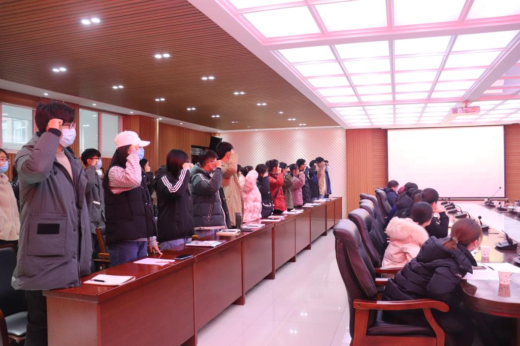 学生代表第十四届团总支副书记李瑞晓带领全体学生干部进行考风考纪承诺宣誓,毛正天院长分别与各班辅导员、班长签订诚信考试承诺书。