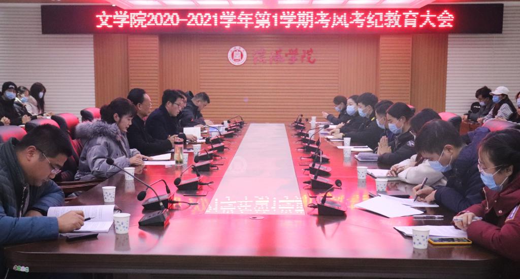 为进一步加强考风建设,为广大学生营造良好的考试环境。12月10日下午4点20分,我院在人文楼208会议室召开2020—2021学年第1学期考风考纪教育大会。出席此次会议的有文学院院长毛正天、党总支书记李赟、教学副院长黄亚妮、教学秘书陈浩、行政秘书陈俊、学工秘书徐远东以及全体辅导员。团总支学生会主席团、2018级、2019级、2020级各班班长和学习委员参加了此次会议。会议由党总支书记李赟主持。