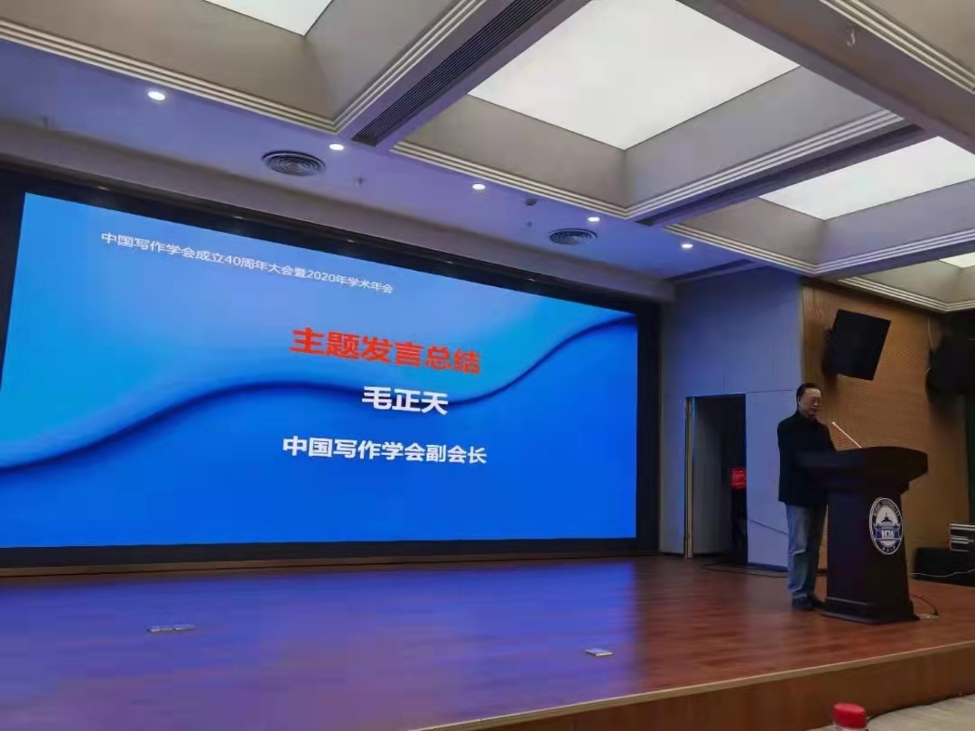 12月26日,文学院院长毛正天教授以中国写作学会副会长名义出席中国写作学会创会40周年暨2020年学术大会线下主会场,为主题演讲作总结。该次会议主要以线上方式举行,线下主会场设在武汉大学文学院学术报告厅。当天,近万人次参加了线上观看。