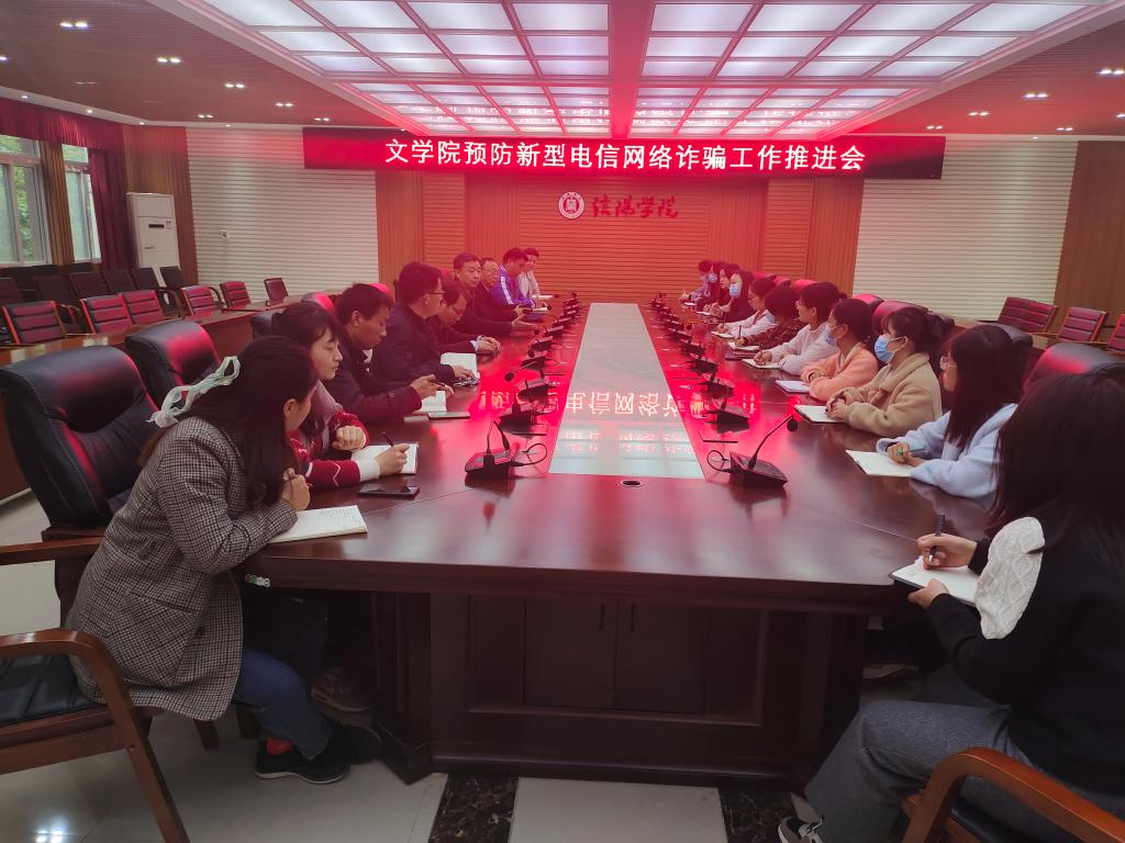 4月26日下午,文学院预防新型电信网络诈骗工作推进会在人文楼208召开,副校长王志华出席并讲话。会议通报了近期我省高校师生遭受电信诈骗的有关情况,讲解电信诈骗的危害,并对下步做好校园反诈骗工作进行安排部署。后勤保卫部部长王力、校团委书记郑山峰、文学院党总支书记李赟以及文学院全体专兼职辅导员参会。