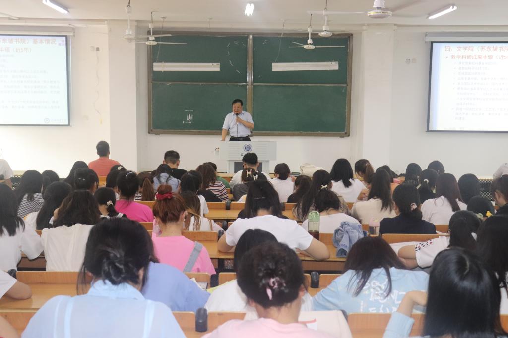 会后,胡立新教授在文学院108教室为文学院150余名学生做了“语文教学论”讲座与考研指导。