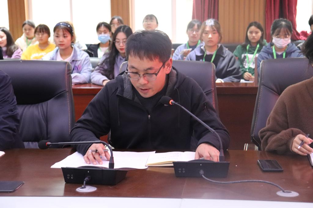 广电实践创新中心陈浩对文学院新媒体融合与传播实践中心的六大部门、四大栏目以及工作流程做了简单介绍。他表示文学院校园电视台和新媒体中心的此次联合将充分利用文学院实验室现有仪器设备,强化理论教学与实践教学之间的联系与对接,重点突出实践教学的示范性和针对性,充分调动学生的工作热情,只有这样才能产出更加优质的作品。