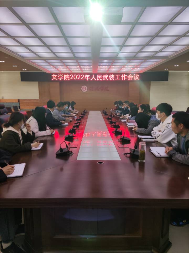 3月10日上午,我院在人文楼208会议室召开2022年人民武装工作会议,会议以习近平新时代中国特色社会主义思想为指导,深入学习贯彻党的十九大和十九届六中全会精神,着重依据学校2022年人民武装工作精神,分析当前形势,结合学院实际情况,安排部署本年度重点工作。出席本次会议的有文学院党总支书记李赟、学工秘书徐远东、团总支书记何军华及全体辅导员。本次会议由徐远东主持。