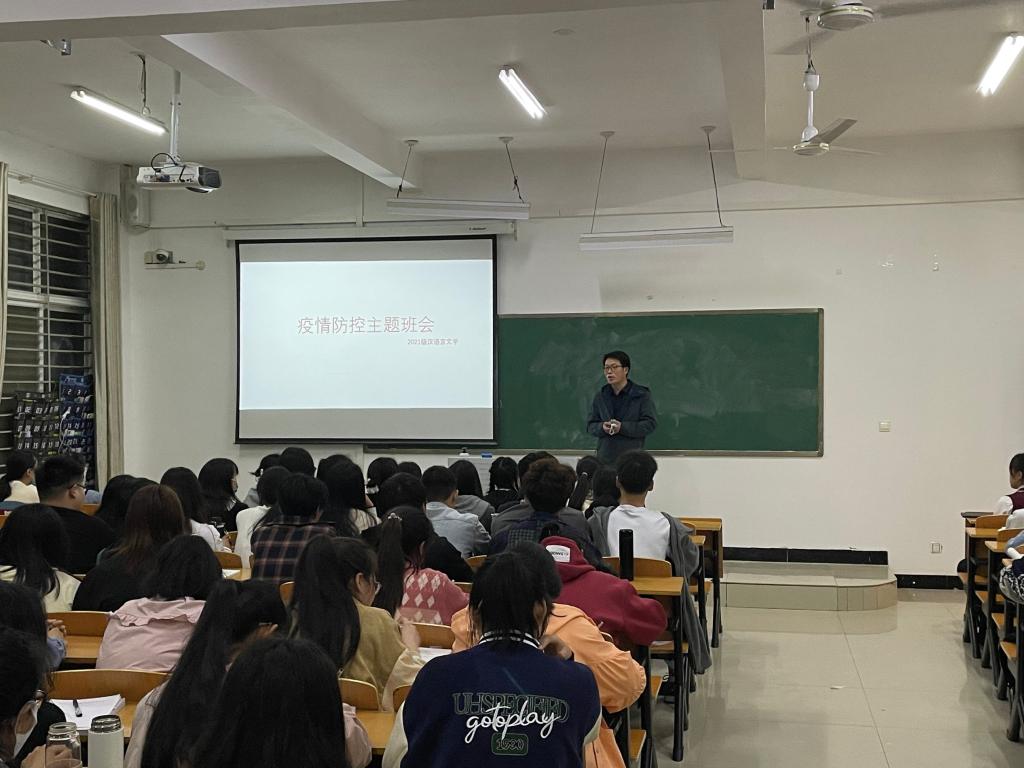 当前,疫情防控形势严峻复杂,为使学生掌握最新的防控政策与要求,3月16日晚,文学院党总支书记李赟带领全体学工深入教室和寝室开展疫情防控教育。