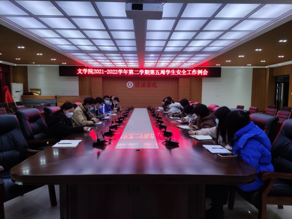 3月21日上午,我院在人文楼208会议室召开本学期第五周安全工作例会,出席本次会议的有文学院党总支书记李赟、学工秘书徐远东、团总支书记何军华及全体辅导员。本次会议由徐远东主持。