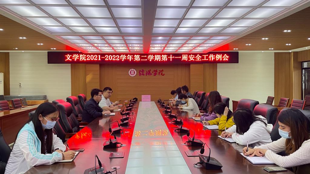 5月3日上午,我院在人文楼208会议室举行本学期第十一周安全工作例会,出席本次会议的有文学院党总支书记李赟、学工秘书徐远东、团总支书记何军华,文学院全体专职辅导员共同参加本次会议。会议由学工秘书徐远东主持。