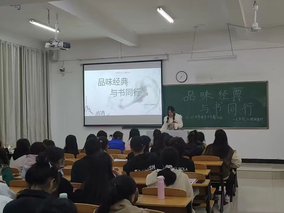 为响应4.23世界读书日,引导学生感受书籍魅力,积极营造文学院读书氛围,4月23日晚7点,我院于人文楼112教室举办主题为“品味经典,与书同行”的读书交流会活动。文学院22级各班心理委员及学生代表参加此次活动,本次活动由心理健康部部长程允滢主持。