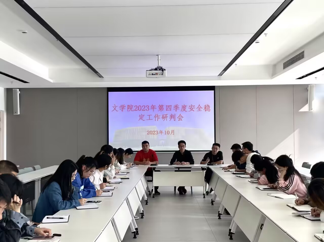 10月26日上午,我院在文学院406会议室召开2023年第四季度安全稳定工作研判会,党总支书记李赟、学工秘书徐远东、行政秘书陈俊、团总支书记何军华及全体辅导员参加了会议。此次会议由学工秘书徐远东主持。