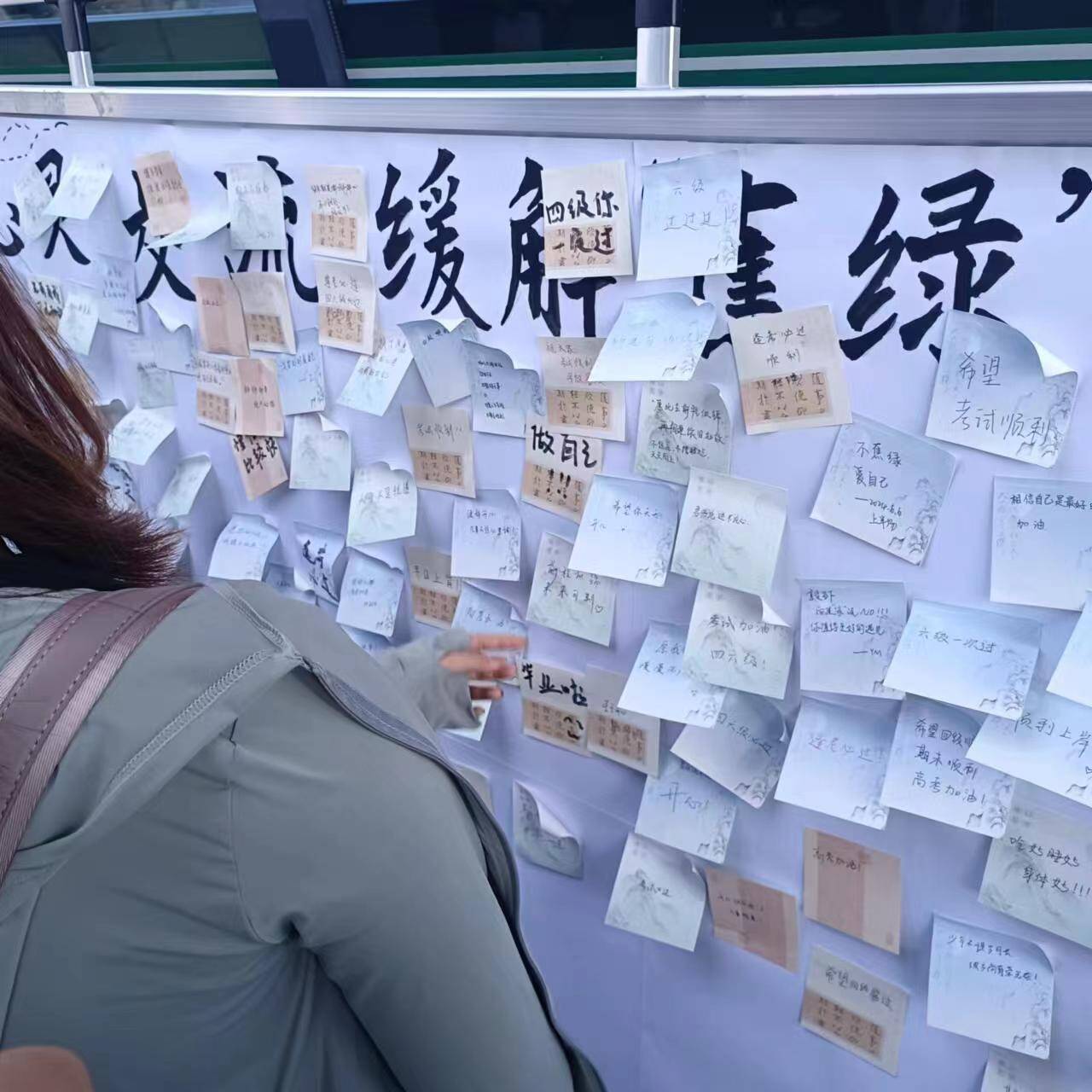 活动过程中,同学们在小纸条上写下自己的问题或期望,将纸条贴在展板上,现场工作人员现场解答,缓解同学们内心焦虑,普及心理健康常识,帮助同学们加深对焦虑问题的认识,直面焦虑,克服焦虑。