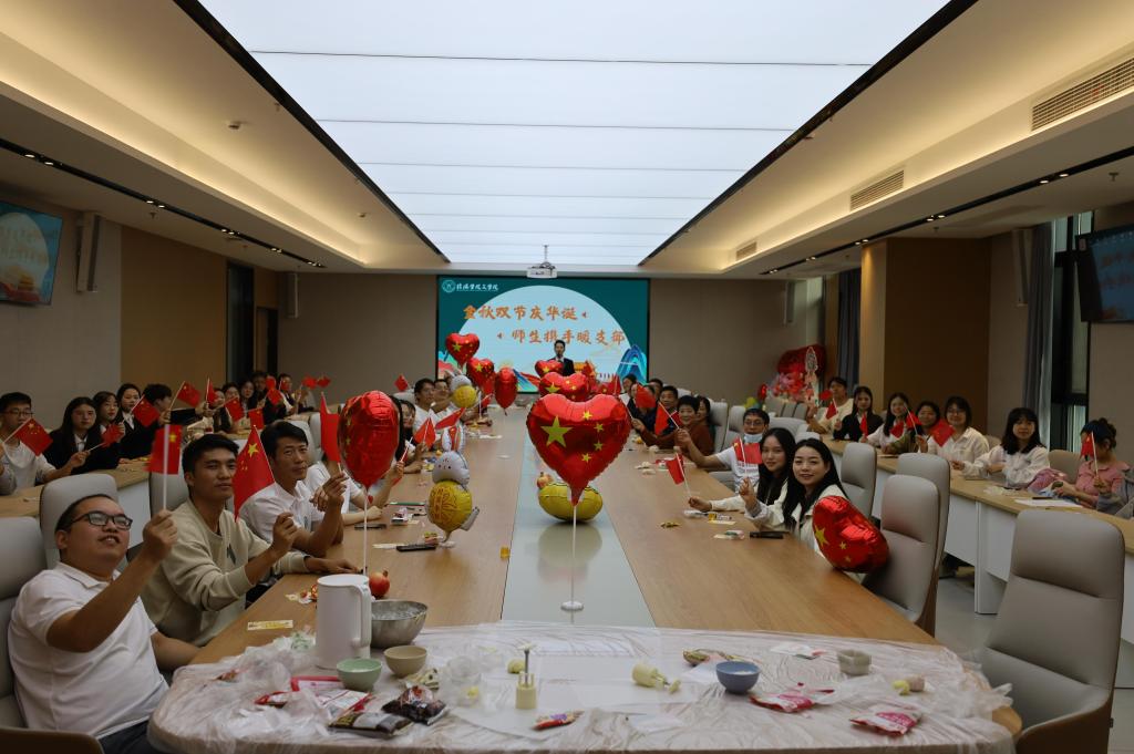 为共庆国庆华诞与中秋佳节,凝聚支部党员向心力。9月28日上午,我院于教一楼406举办了“金秋双节庆华诞,师生携手暖支部”活动。文学院第一教工党支部全体党员、第六学生党支部,第八学生党支部成员共同参加此次活动。