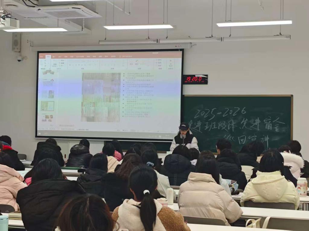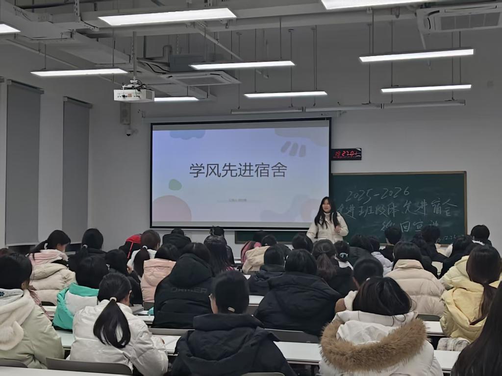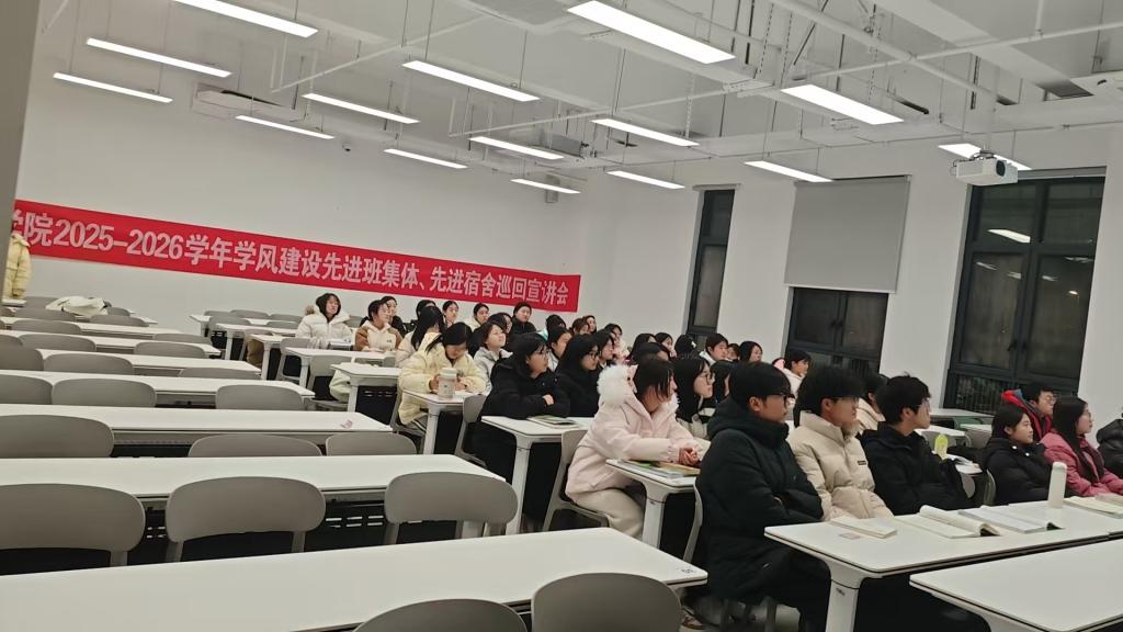 为充分发挥先进典型的示范引领作用,深化学风建设与思想育人成效,12月25日晚,我院2025-2026学年学风建设先进班集体、先进宿舍巡回宣讲活动于教一楼207、307、315、316等教室顺利开展。本次活动聚焦先进班集体、与先进宿舍的典型事迹,面向2025级全体学生展开。