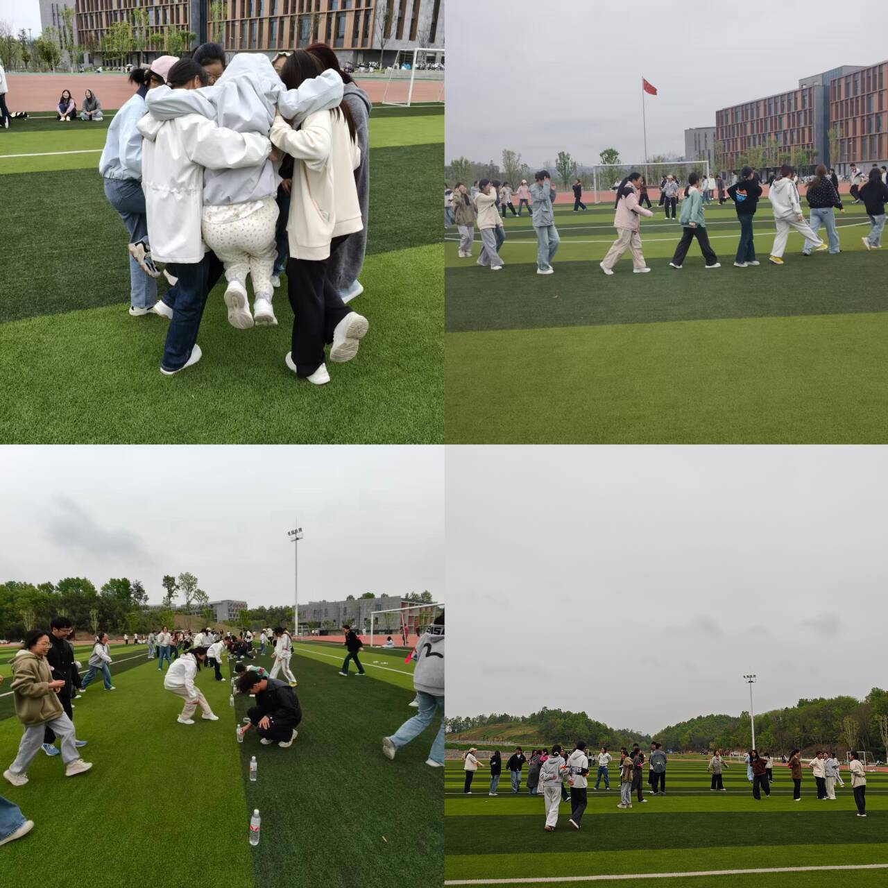 此外,通过“几人几脚”“疯狂矿泉水”“丢沙包”“踢毽子”“呼啦圈”等多种素质拓展活动,全体学生在运动和协作中收获欢乐和成长。游戏间隙,同学们围坐在一起分享感受,畅谈活动中的趣事与收获,在互助中凝聚力量、一路同行。