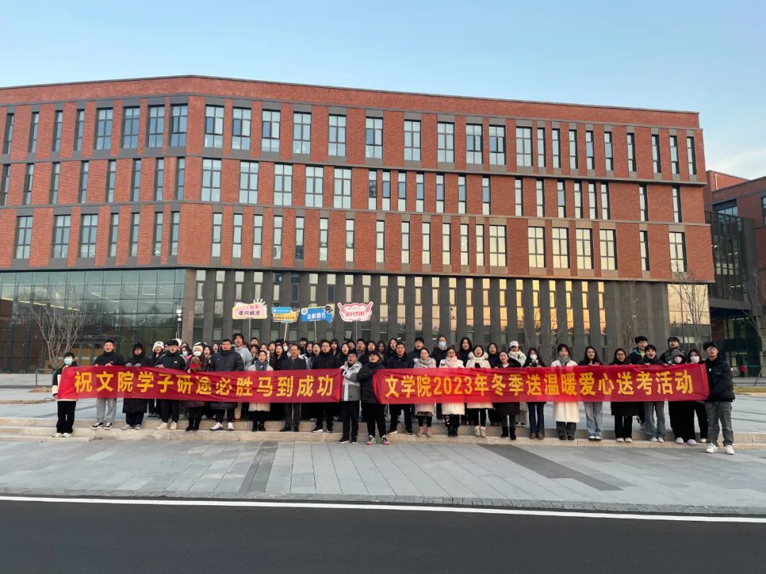 为鼓舞我院考研学子士气,增强考研信心,传递对考研学子的祝福关心。12月23日早上,我院在教学楼前开展文学院2023年冬季送温暖爱心送考活动。文学院院长毛正天,党总支书记李赟,教学副院长黄亚妮,学工秘书徐远东,部分辅导员和学生会成员参与此次活动。