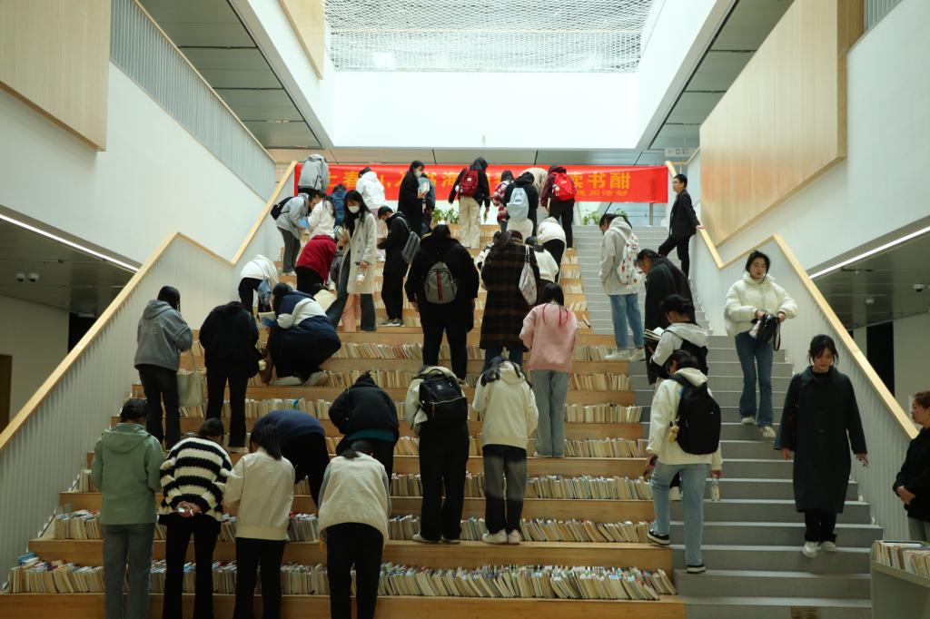 活动现场,学生有序查找感兴趣的书籍,排队办理借书业务。文学院院长张凌江对现场良好借阅氛围进行高度赞扬,表示要持续坚定推进学风建设工作,坚持定期开展送书活动,为学生提供便利,营造浓郁书香气息。