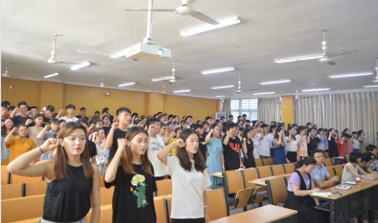 学生代表张思雨发言并带领全体学生干部进行了诚信考试宣誓,各班班长与辅导员现场签订了诚信考试承诺书。