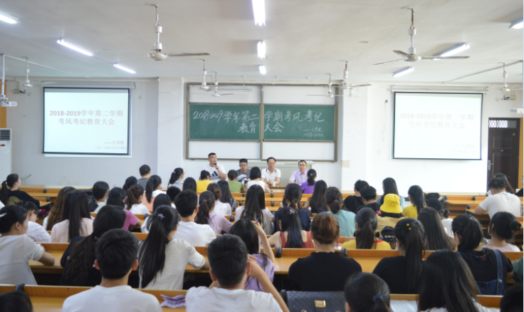 陈俊宣读了《信阳学院普通本专科学生违纪处分实施办法》,王松老师就期末考试具体工作做了安排。
