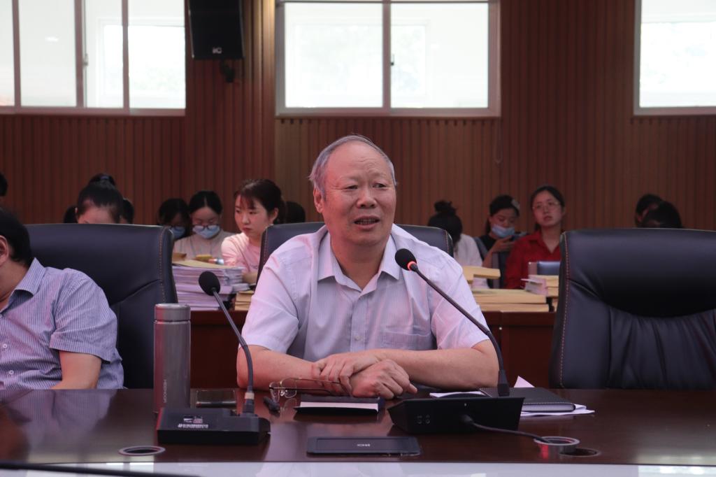 文学院院长毛正天做总结讲话,他首先强调教学工作检查的意义与作用,指出期初教学检查既是常规工作,又拉开了教学评估工作序幕,进入评估情境,要求全员务必高度重视,全力做好该项工作。他认为文学院的教学工作本身做得相当不错,涌现了很多典型,但教学材料归档工作并未得到同等重视,要把教学工作从备教辅改考延伸到教学材料的归档环节,要转变观念,真正把教学工作精细化。毛院长重点强调了教学改革、教学设计的“课程思政”,指出,课程思政已经从以前的一般提倡变为制度化工作,是新常态的题中之义,各位教师务必从提高政治站位、扩展学术格局和内化教师师德三个方面下功夫,将课程思政与专业教学有机融合,真正把教书育人落到实处。