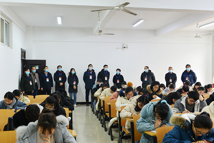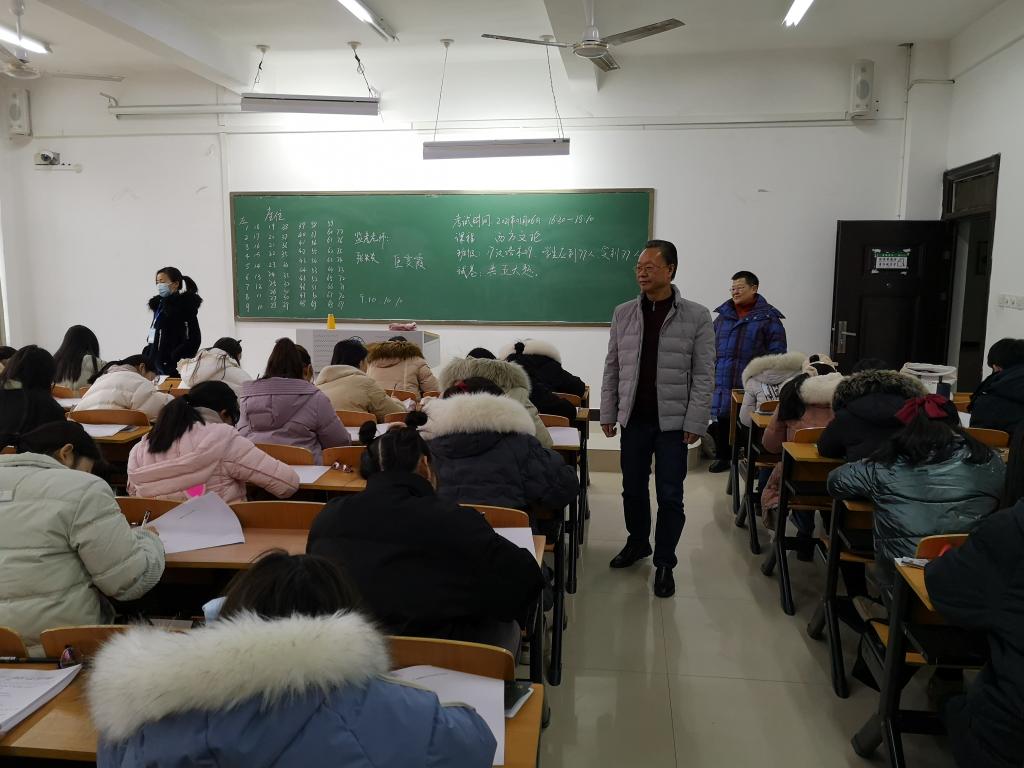 此次期末考试时间自1月4日到1月12日,共290个考场,4022名学生参加考试,580名老师负责监考。在近期的考试巡视过程中,毛院长详细询问了考场安排、服务保障、学生考勤考纪、手机集中存放、是否宣读考场告知书、学生签订诚信考试承诺书等情况。要求全体监考教师、考务人员继续履职尽责、严肃考风考纪,维护公平公正,确保考试顺利进行。