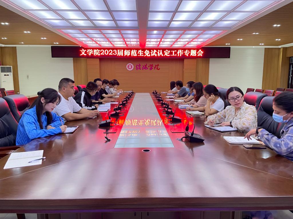 为加快推进学校师范生免试认定工作,规范学校师范生教育教学能力考核工作,提升师范生教育教学质量,9月26日,文学院在人文楼208召开2023届师范生免试认定工作专题会。参加本次会议的有文学院院长毛正天、党总支书记李赟、教学秘书陈浩、学工秘书徐远东、团总支书记何军华及文学院全体辅导员。本次会议由陈浩主持。
