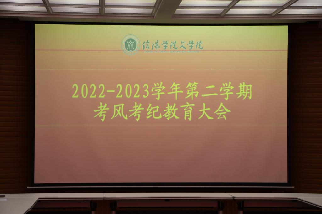 行政秘书陈俊宣读信阳学院普通本、专科学生违纪处分的相关文件。他重申考试违纪作弊的严重后果,告诫学生严守考试纪律,遵守考试规则,诚信考试,树立良好的考生形象。