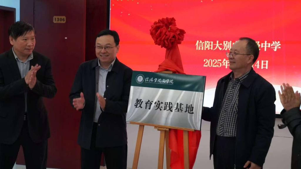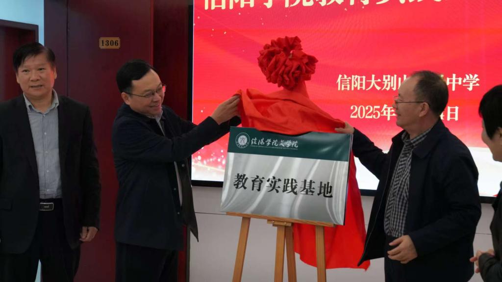 10月15日,信阳学院与大别山高级中学共建实习基地签约揭牌仪式在信阳市大别山高级中学盛大举行。信阳学院教务处处长徐久成率文学院院长张凌江、党总支书记李赟、教学秘书陈浩、教务处杨超及实验室中心主任陈廷洋一行赴会,大别山高中校长苏锡永主持仪式,双方就深化教育协同育人达成重要共识。