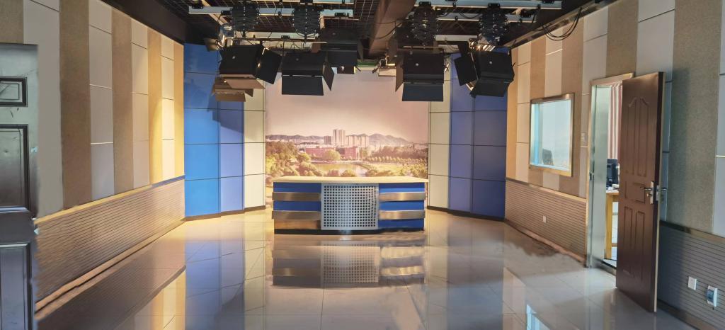 位于图书馆406和人文楼南楼501房间两个部分,是我院以电视节目制作流程及训练为一体的实训室,有完好的专业隔音环境,灯光系统,配备有实景演播台和FS、Z280摄像机及专业导播设备,不仅为相关导播课程服务。也是学生开展电视节目制作流程的理想实训场所。