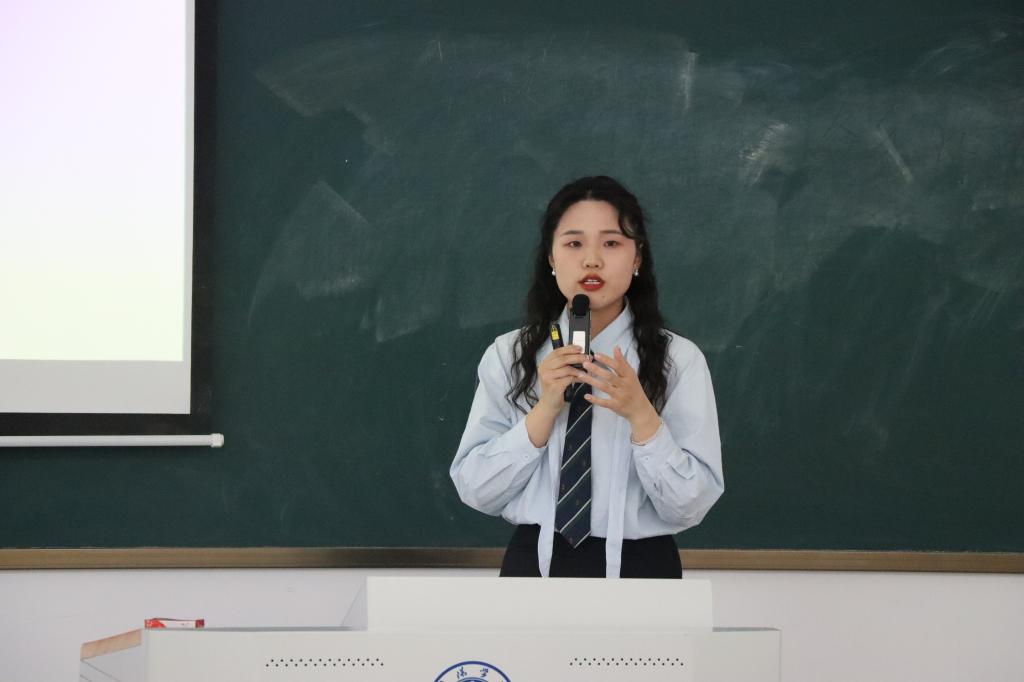 陈苗苗老师选取《现代汉语(一)》中《词义及其性质和构成》作为本次比赛的主讲内容,陈老师借助典型词语将书本上晦涩难懂的知识点用通俗易懂的方式呈现在评委老师面前,流利清晰的讲解,生动形象的教学模式获得了在座老师们的称赞;徐一丹主讲《中国古典文献学》,结合学科特点与教学内容,以《四库图书》为例配合图文并茂的课件,让在座老师对《四库全书》这一古典文献有了更加深刻的认识。面对评委老师的提问,徐一丹老师提到并展示了日常教学中与同学们一起制作的文献书籍作品,以此来提高同学们对这一学科的兴趣,从而更好地掌握书本上的知识。
