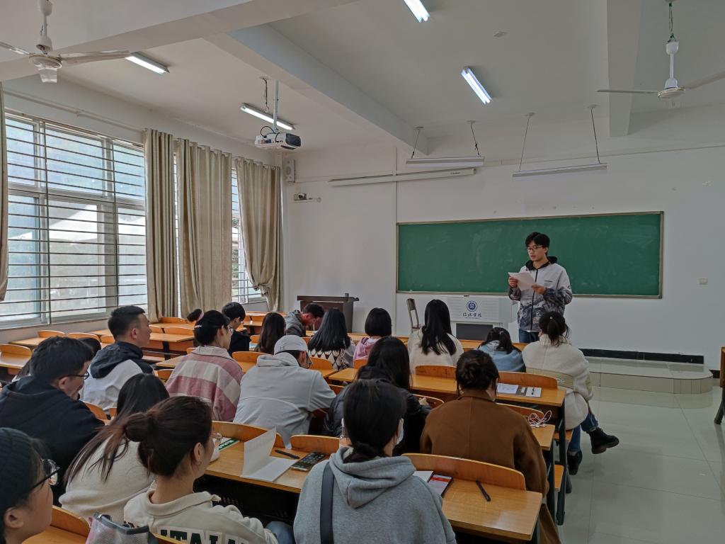 10月26日上午,文学院第二学生党支部在人文楼112教室召开学习“习近平在庆祝中国共产党成立100周年大会上的讲话”主题党日活动,文学院第二学生党支部书记訾同超及全体党员参加了本次会议。