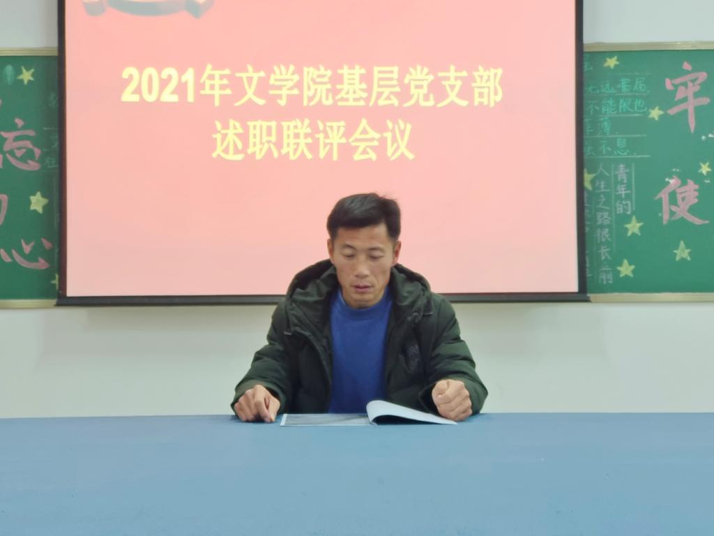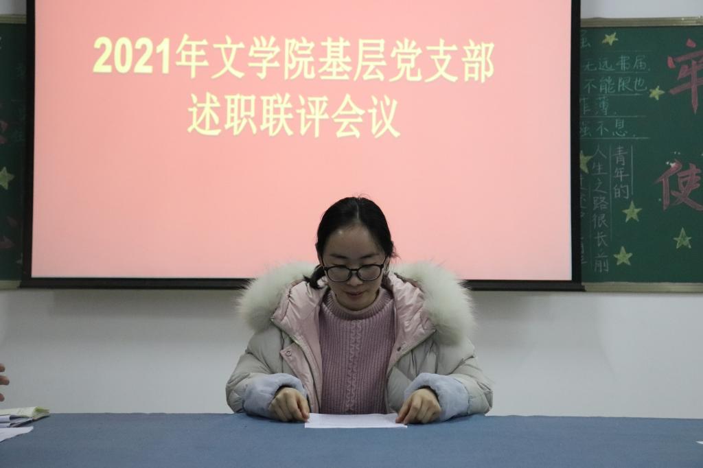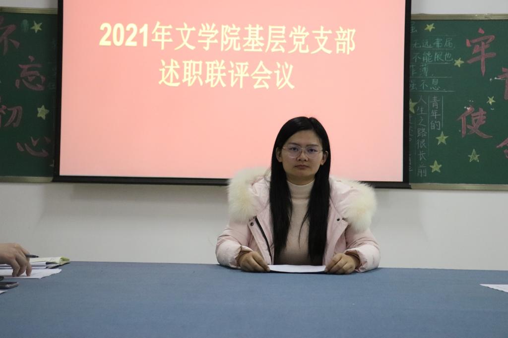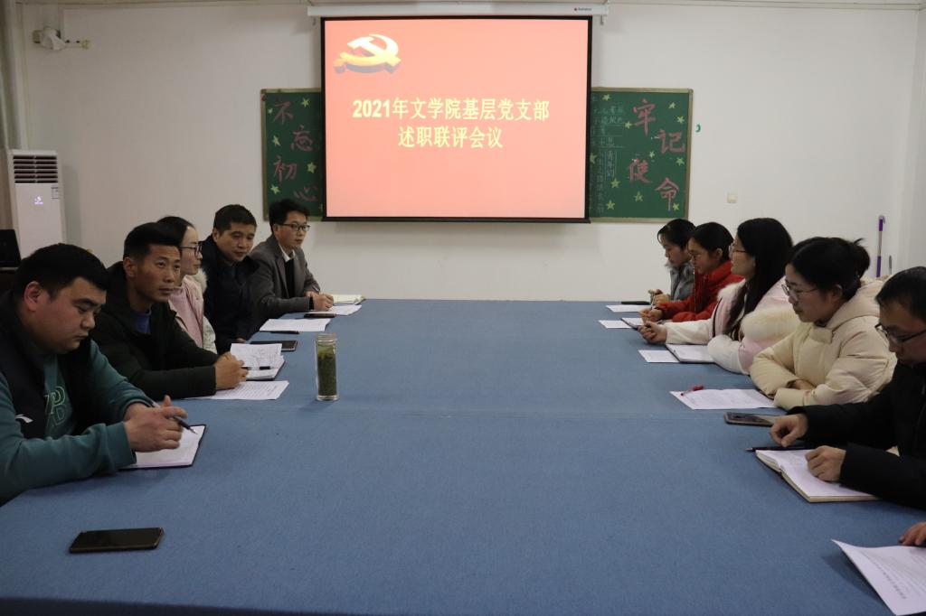 1月6日下午,文学院党总支在人文楼114党务活动室召开2021年度基层党支部述职评议会。文学院党总支书记李赟,全体党总支委员及文学院教工党支部和学生党支部书记参加会议。会议由文学院党总支书记李赟主持。
