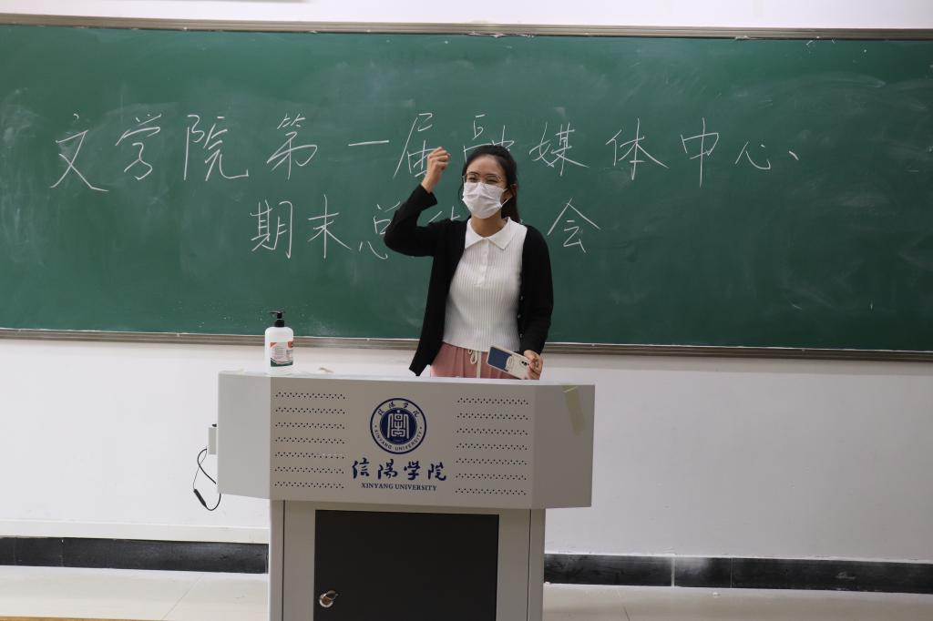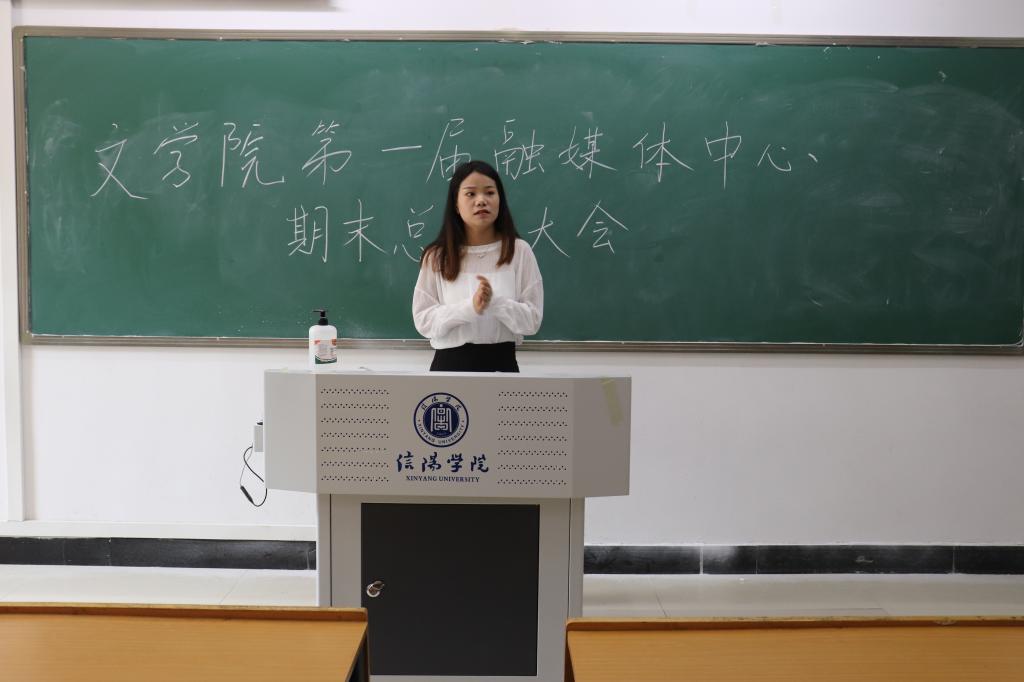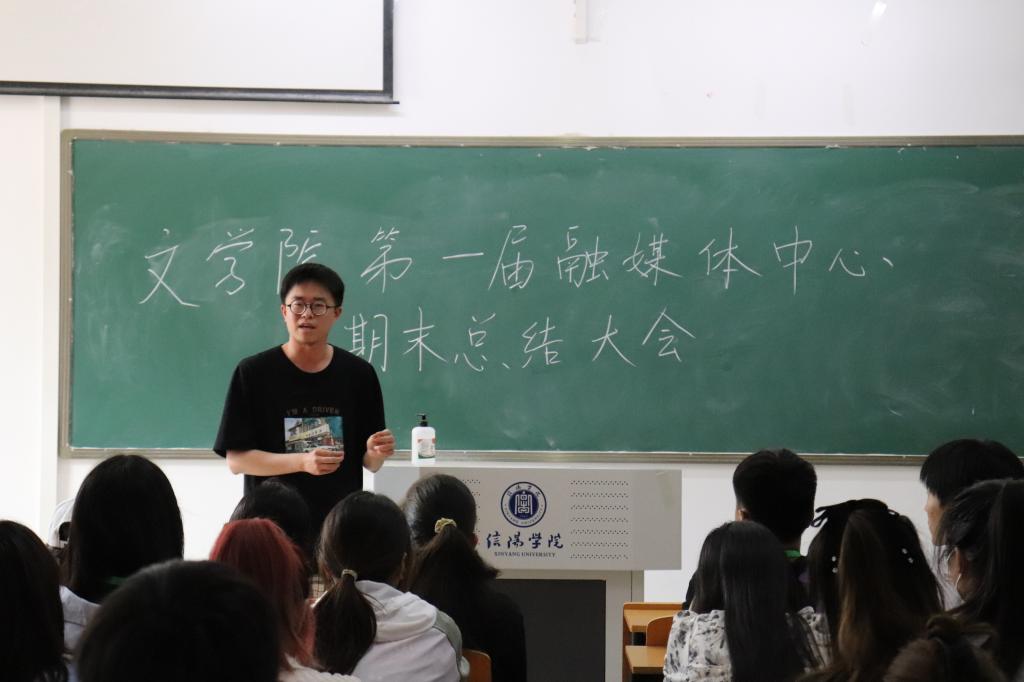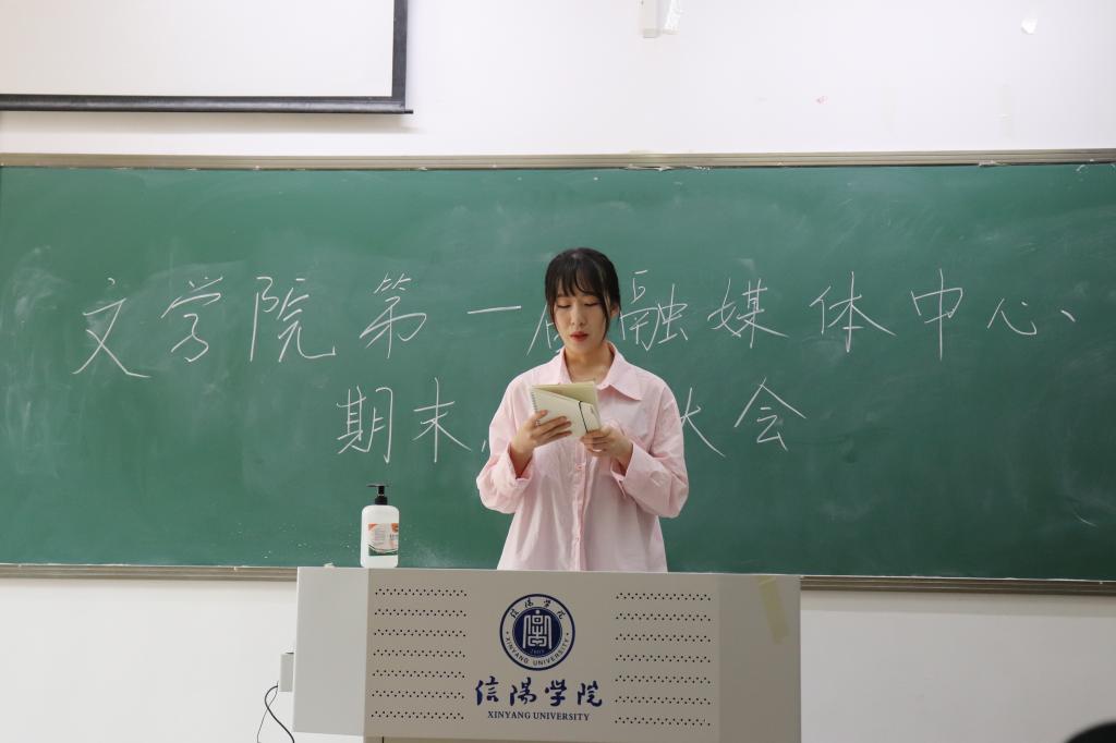 新媒体代表李若璞对本学期的工作进行总结,并宣读文学院融媒体中心2021-2022学年第二学期工作获奖名单。