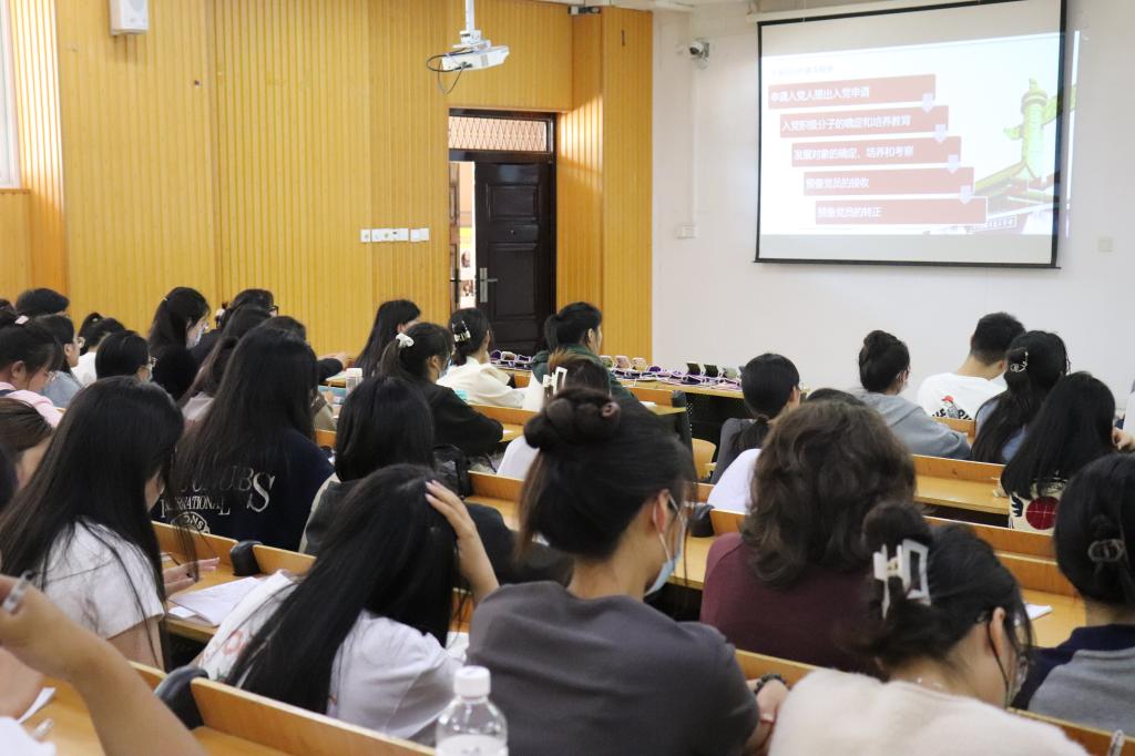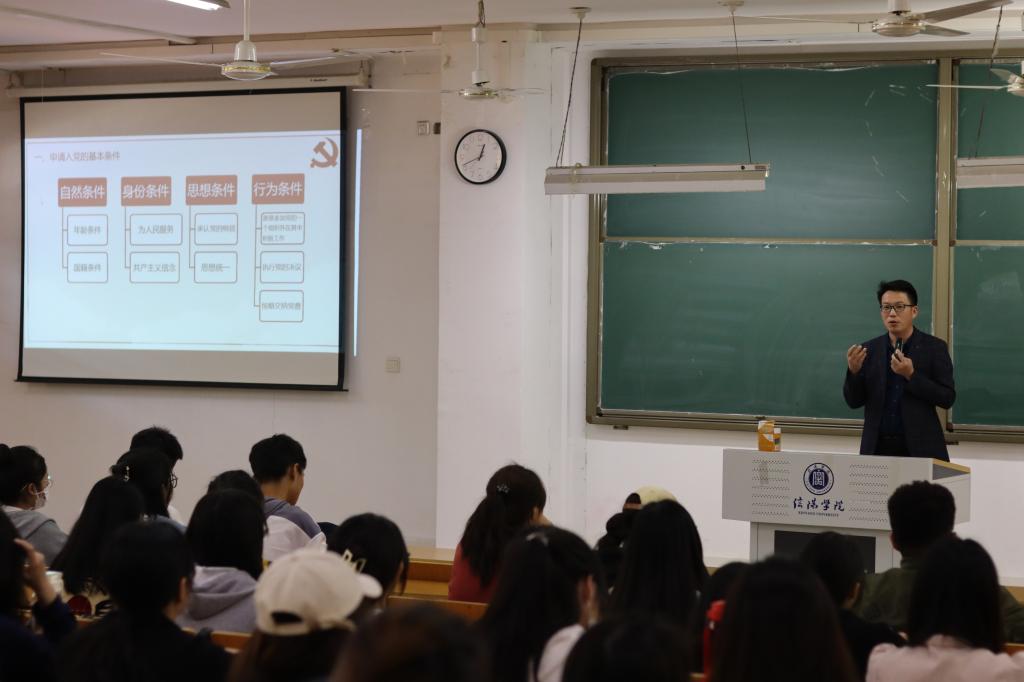 李赟书记讲授专题党课,他表示大学生入党既要符合党章规定的基本条件,也要符合学校党委规定的具体条件,对党组织有明确认知,具备良好的政治思想,乐于为同学和集体服务,学习优秀,工作积极,为党组织及学校院系做出积极贡献。