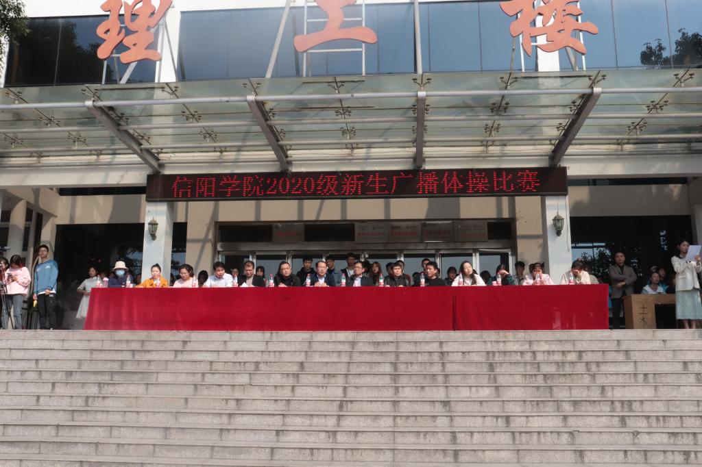 为坚持积极引导与满足当代大学生健身需求相结合,大力推广普及简单易学、科学有效的广播体操健身方法,增强学生身心健康发展。11月13日,我校在理工楼前举行信阳学院2020级广播操比赛。本次比赛的参赛方队由各院新生组成。公共体育教学部主任周曙光,舞操教研室主任剧红梅,校团委书记郑山峰,及各二级学院团总支书记出席本次比赛并担任评委。