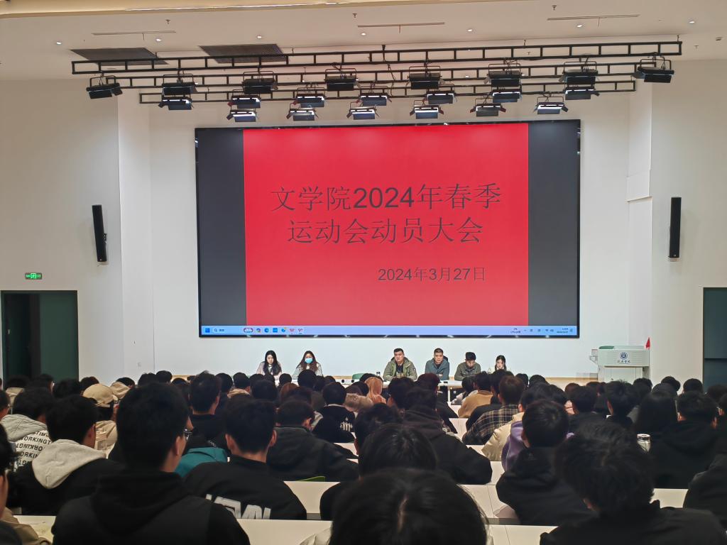 为展现文学院学子的朝气和活力,鼓励学生锻炼身体,发扬体育精神,同时激发运动员训练热情,提高运动员参赛信心,我院于3月27日中午在教学楼112报告厅召开文学院2024年春季运动会动员大会。学工秘书徐远东、辅导员冯叶、翟坤、左德松、常歌、刘鸣鸣及文学院各班班长和全体男生参加此次会议。此次会议由学工秘书徐远东主持。