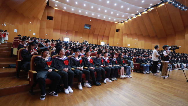 在校生代表赵梦佳用质朴的语言为毕业生们送上了最真诚的祝愿,讲述着校园里的青春与自由。