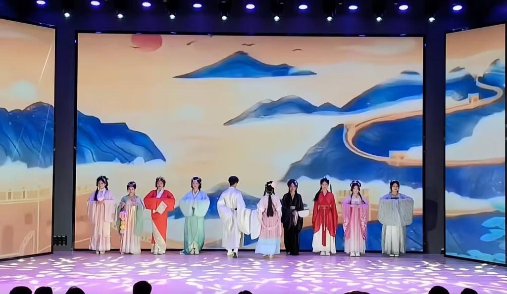 在话剧表演《万松书院》中,少年少女述说着动人的情意与远大的理想,演绎了一段动人心弦的波澜趣事;《汉服文化秀》以山水为背景,身披纱衣,手提绢扇,衣袂翩跹,身姿飘然,如同水墨流动,灵动又充满意趣,舞台与传统服饰碰撞,书写文化自信的新形式。走秀表演结束,现场抽奖环节由李赟书记随机点停,抽取三名二等奖得主。