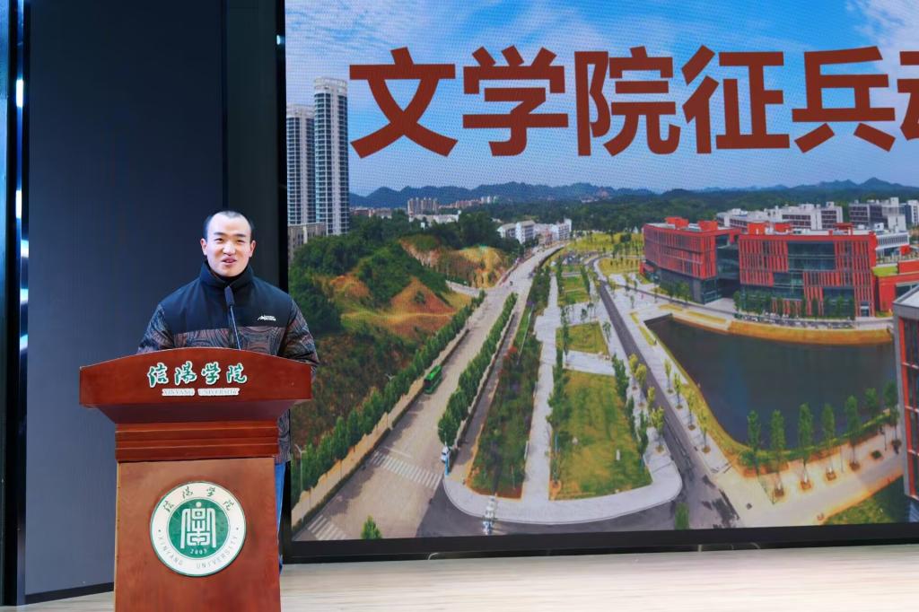按照河南省军区、省教育厅、区武装部等上级单位有关要求,2024年12月中旬文学院在教一楼113演播室分两次召开征兵入伍宣讲大会。此次会议由文学院征兵专员訾同超老师主持。退伍复学大学生代表张少波、刘恒基、文明、王林超、李千喜及文学院全体男生先后参加会议。