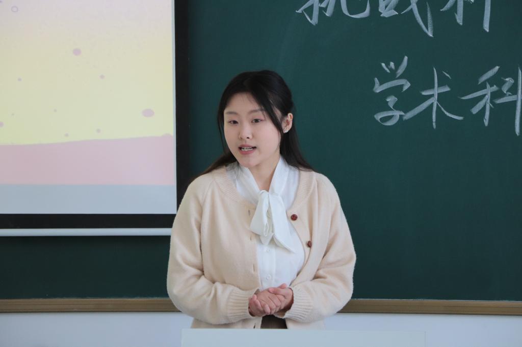 咸雅琪在汇报中表示,为进一步探究红色文化的传播和弘扬,她所在的团队开展了“大别山红色术语库建设研究”活动,同时对比所查数据,展示了研究所具有的新颖性与独创性。团队成员通过文献资料法、实地调查法,现已获得了红色文化术语两百多个,并依据标准进行建设数据库,加强术语标准化。