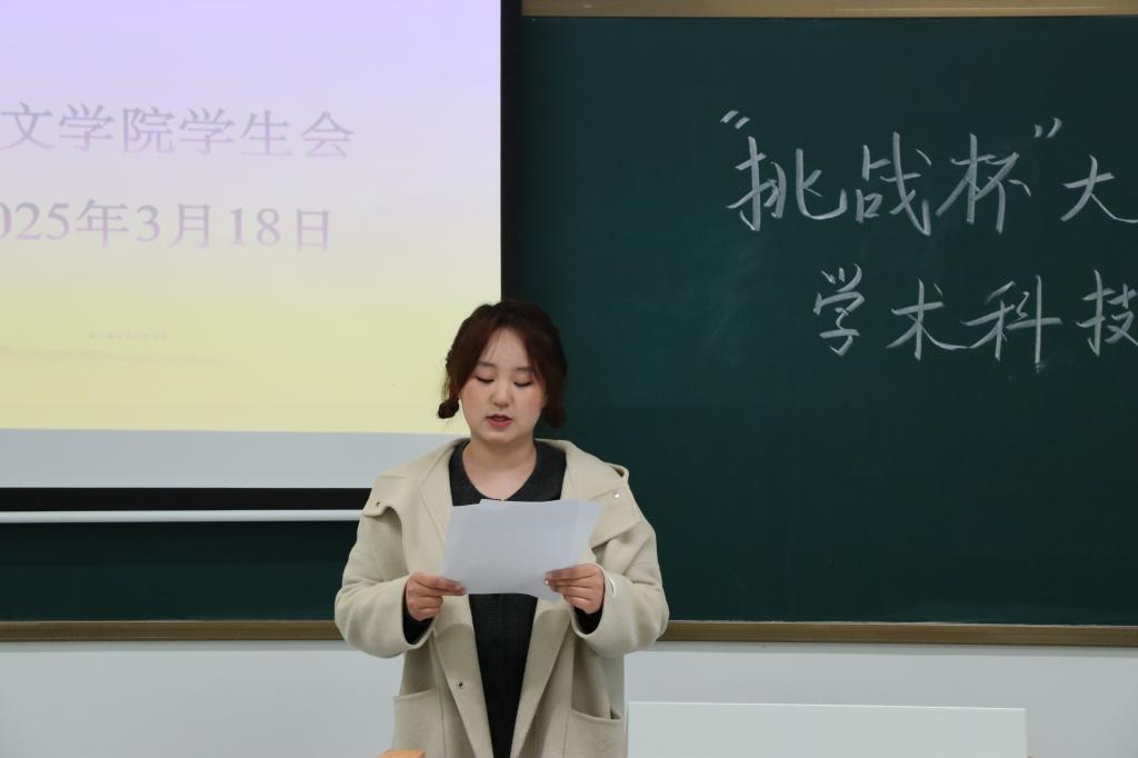 为培养学生的创新精神和实践能力、促进学术交流与合作、激发学生同学们的科研兴趣,3月18日下午,我院于教一楼315、316教室开展“挑战杯”大学生课外学术科技作品竞赛。文学院辅导员冯叶、冯乐、张磊、王悦出席活动并担任评委,本次活动由张彤、方一帆主持。