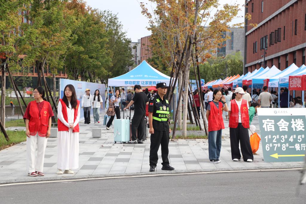 学生干部和志愿者们提前来到迎新广场做好准备工作,在学校大门、报到处、宿舍楼等关键位置设置醒目的指示牌,引导新生顺利完成报到流程。志愿者们穿梭在人群中,主动帮新生搬运行李,耐心解答各种疑问。辅导员们则高效维护迎新秩序,用心尽责恪守本职。从引导路线到搬运行李,从解答疑问到维护秩序,各个细节都充满关怀,给初来乍到的文院新生们带来家一般的温暖。