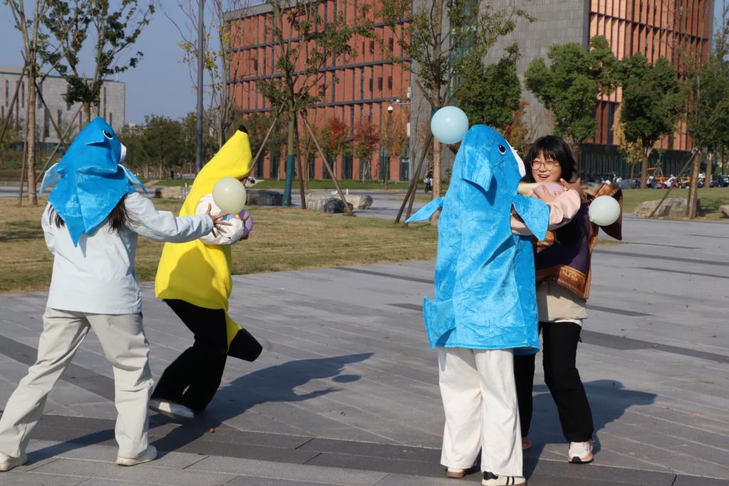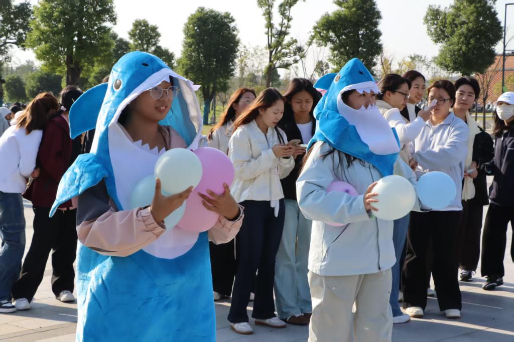 “奇异服装接力赛”则让队员身着特色服饰抱气球接力跑,剩余气球最多且用时最短的队伍获胜。队员们既要保证速度,又要尽可能多地保护气球,紧张刺激间满是欢乐。