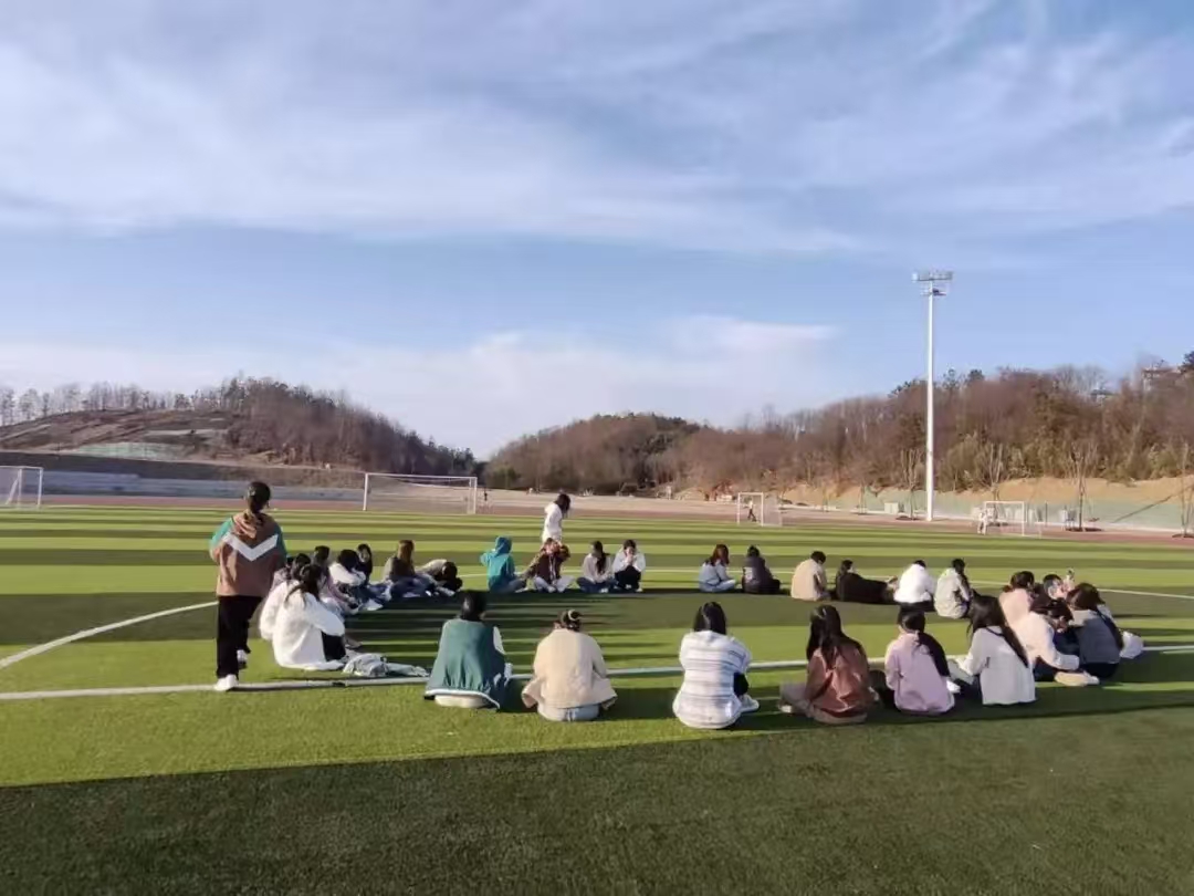 在宽阔的足球场草坪上,同学们围成圈席地而坐,在蓝天白云的映衬下,从“姓名接龙”到“故事分享会”,大家逐渐放下拘谨。有人倾诉学业压力,有人畅谈兴趣爱好,真诚的交流让彼此的心贴得更近。活动尾声,大家在夕阳下合影留念,将这份属于青春的坦诚与温暖定格。这场户外团辅,让同学们在自然中释放情绪,在互动中建立信任,为心灵搭建了沟通的桥梁。