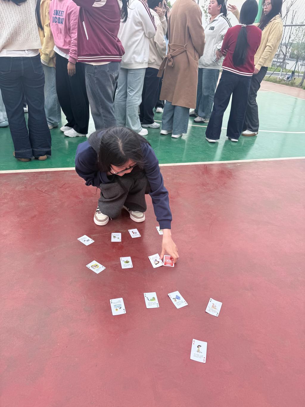 倒扣的A–K 扑克牌随机摆放,各组需按顺序依次翻牌。同学们轮流上阵、分工协作,有人牢记牌位、有人统筹指挥、有人精准执行。在一次次尝试与调整中,团队配合愈发默契,当最后一张 K 成功翻开时,全场响起热烈掌声,尽显团结协作、策略共赢的力量。