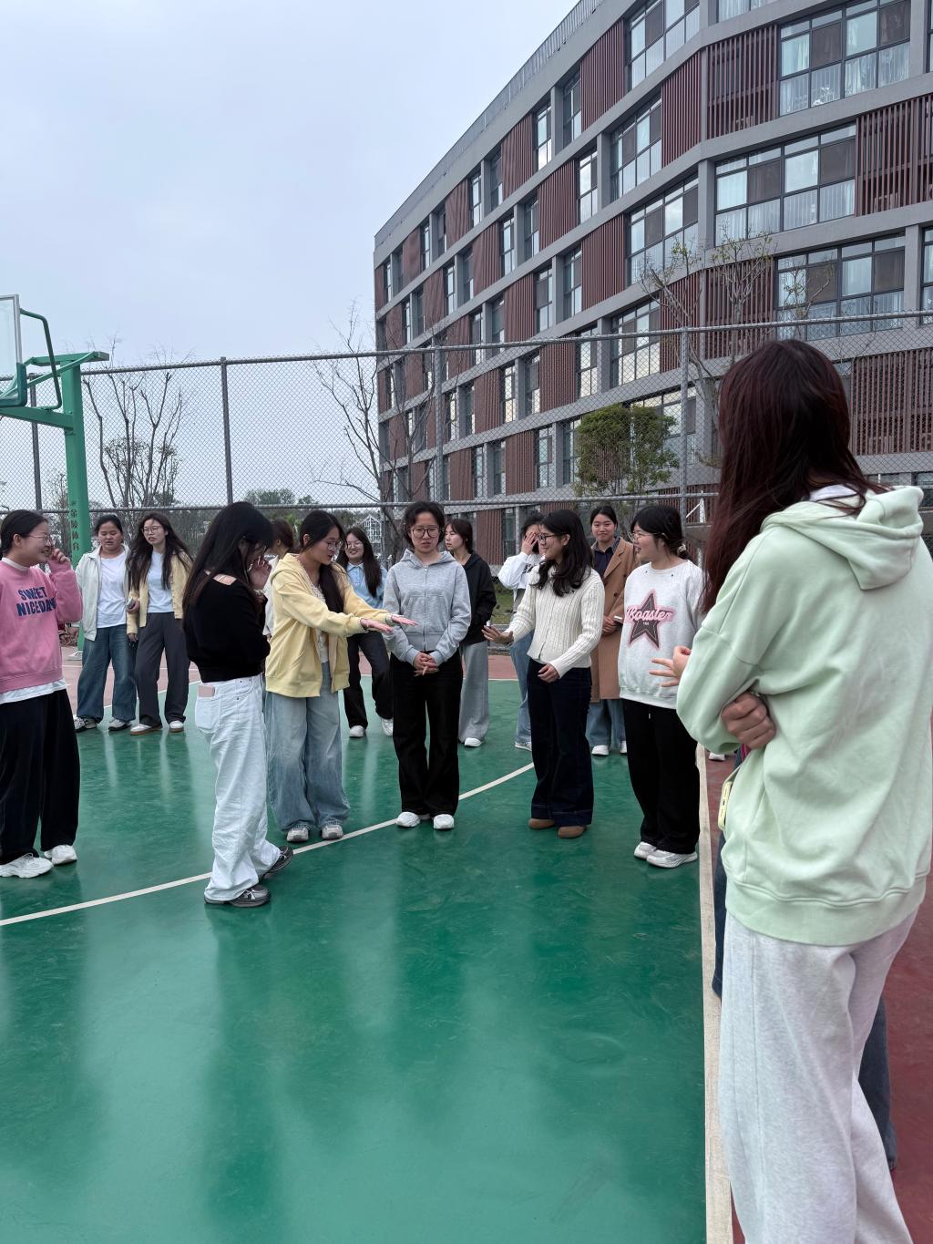 2026年4月7日下午,23汉语本17班在南湖校区1号宿舍楼前篮球场举办了“春日同行,心暖相伴”主题户外心理团辅活动。本次活动由班级负责人唐灿灿组织,全班 56 名同学全员参与,在轻松愉悦的氛围中共享春日美好,共筑心灵联结。
