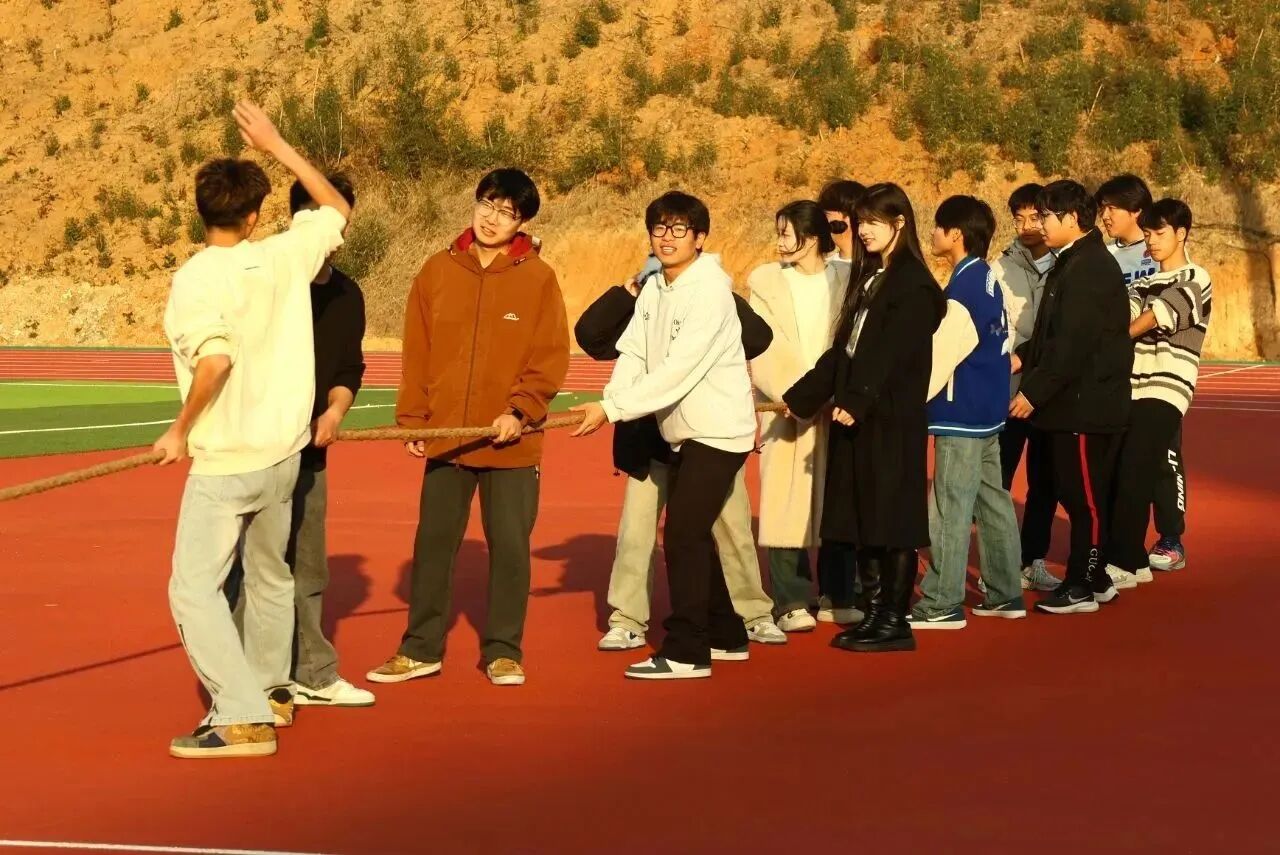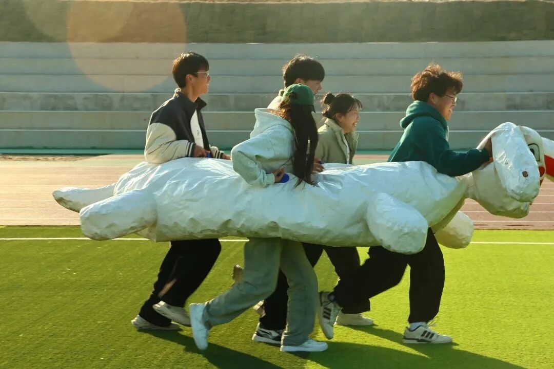 本次活动精彩纷呈,比赛项目众多。在“协同作战”游戏中,两人用手臂夹住排球在跑道上行进,通过组队接力的方式,拉近彼此距离,不仅提高了同学们的身体素质,还进一步增强团队凝聚力与协作能力。